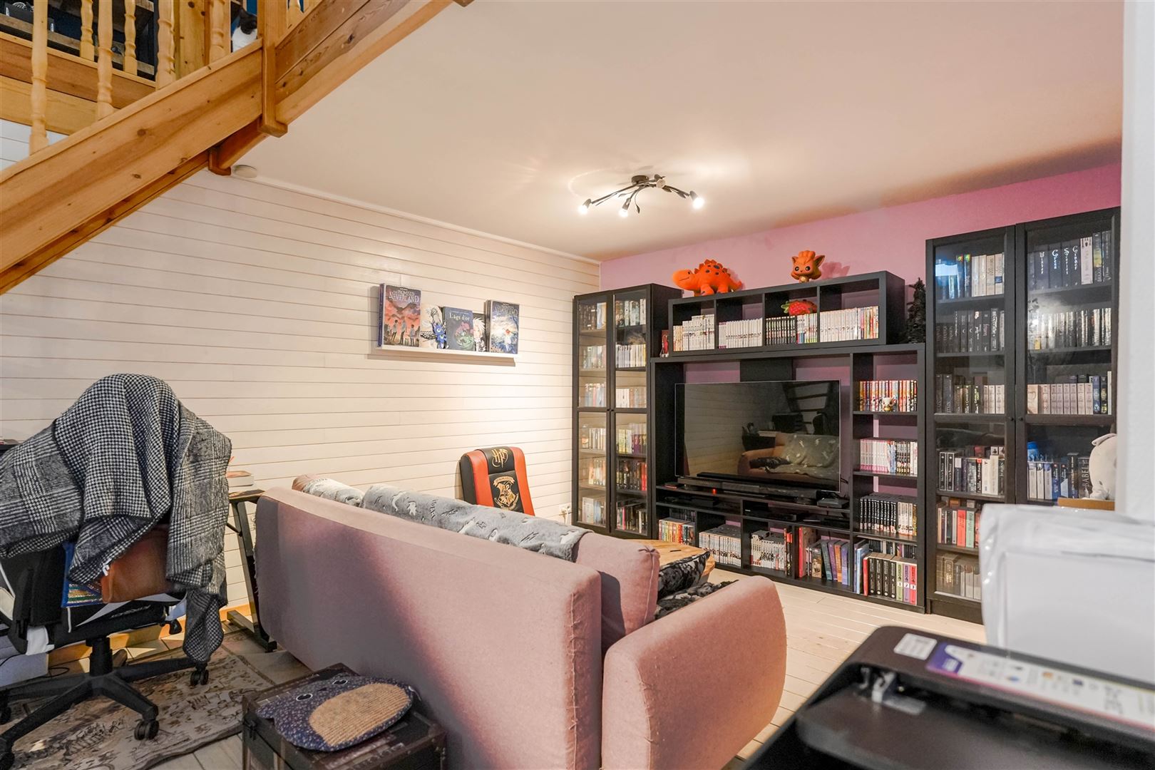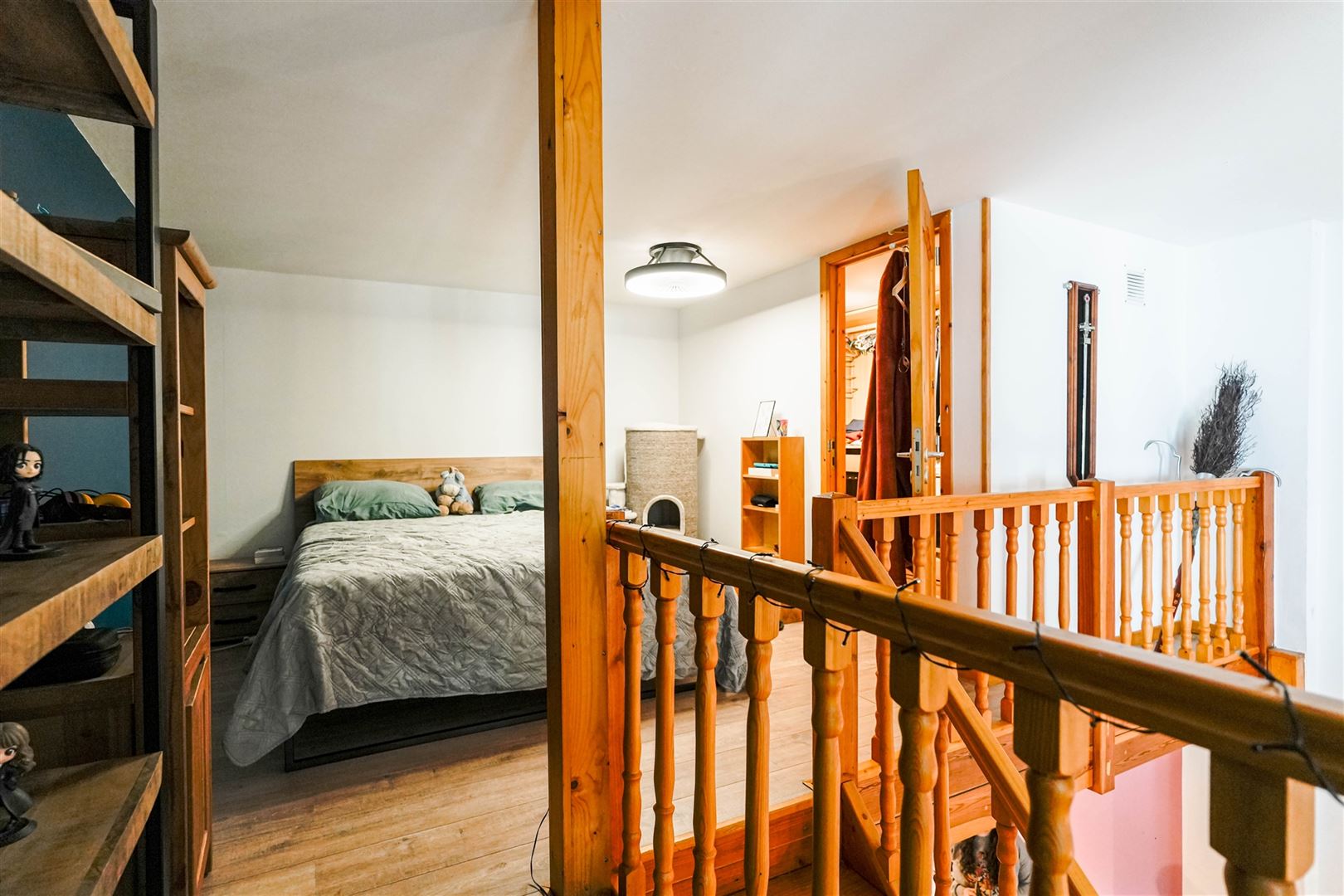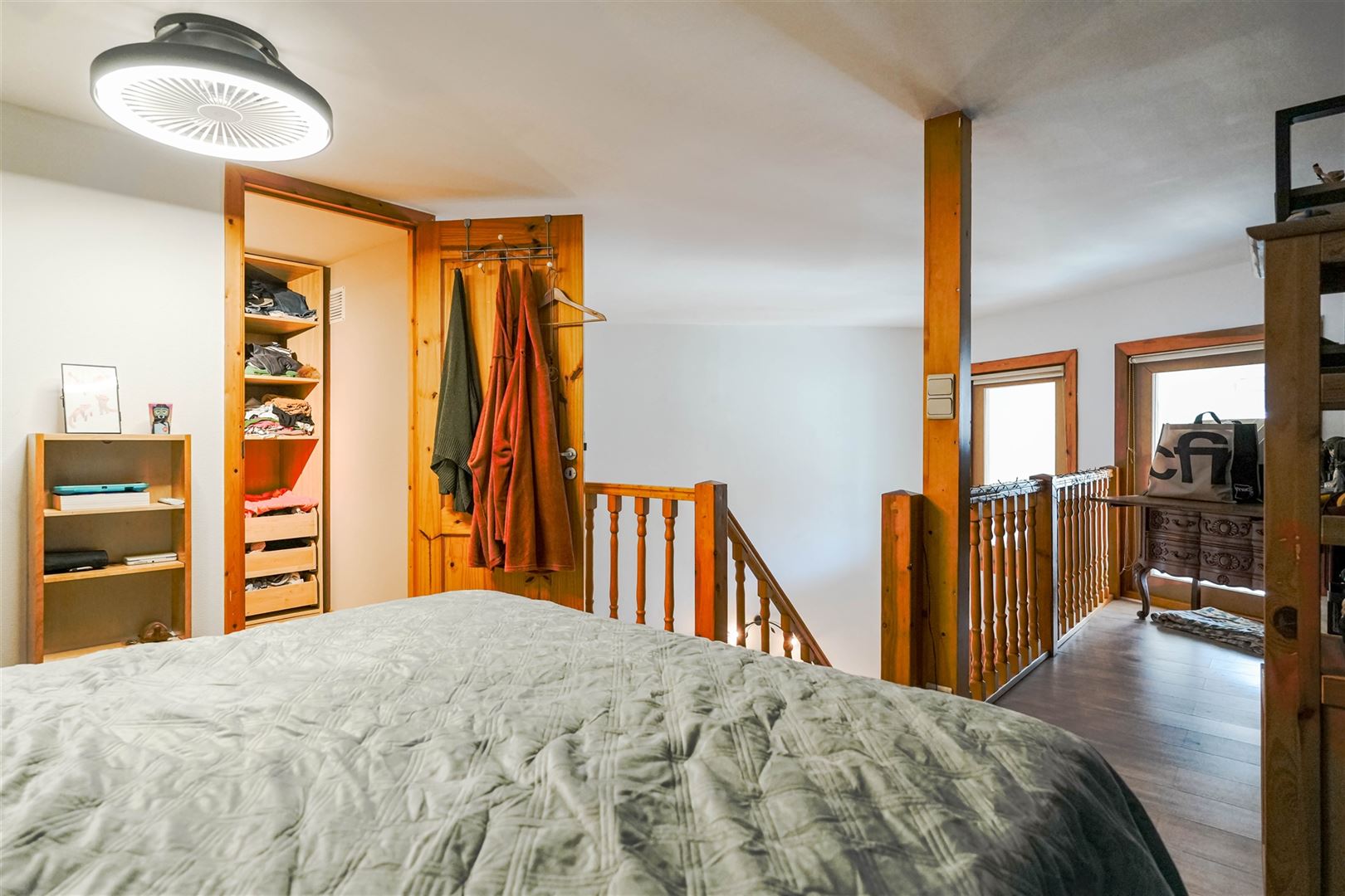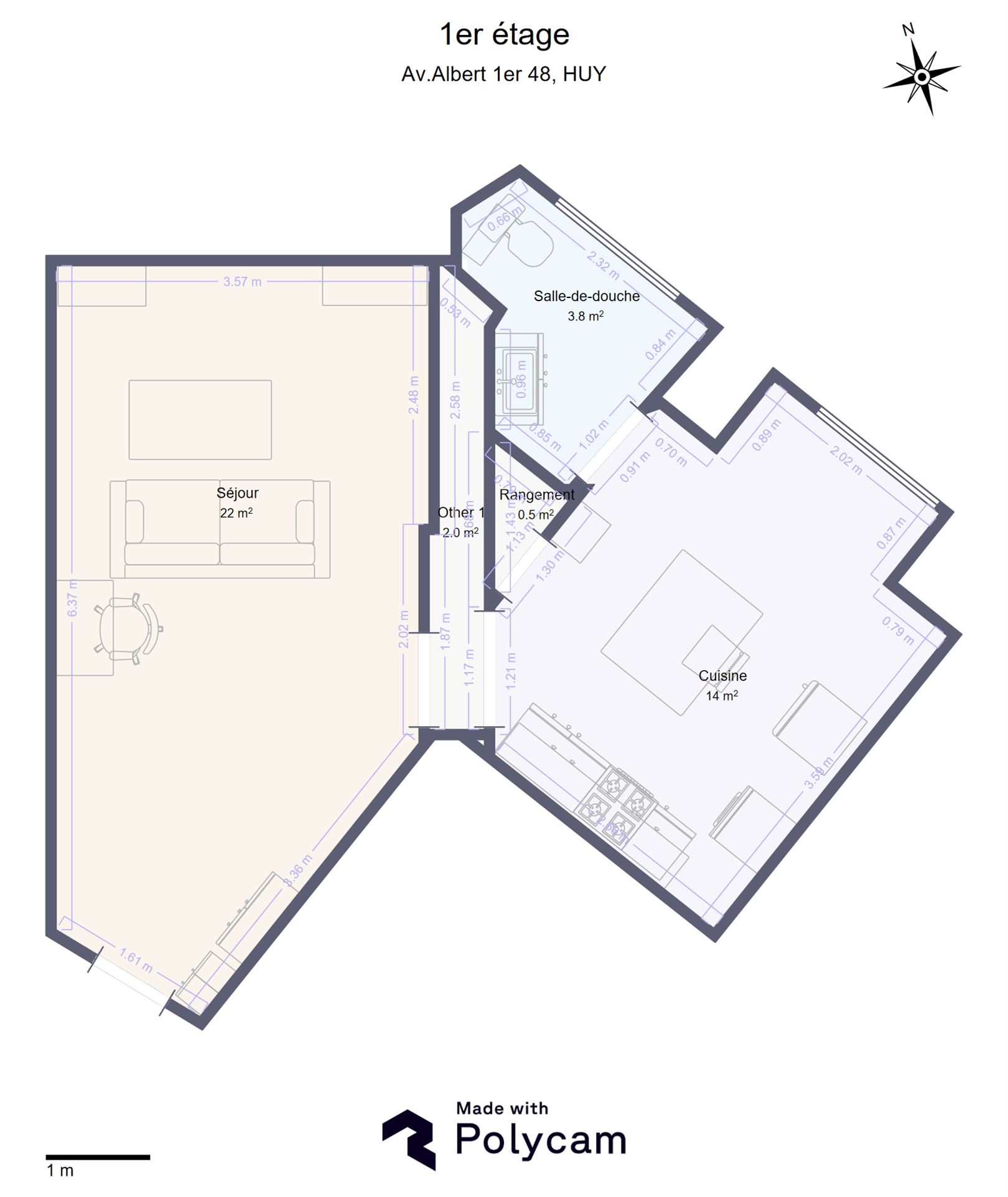Au 1er étage : beau séjour de 22 m², cuisine équipée de 14 m² et salle-de-douche, agréable chambre en mezzanine de 11 m² avec dressing.