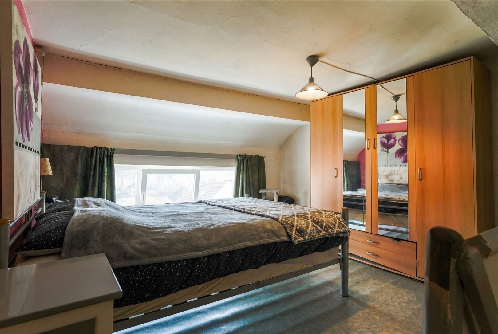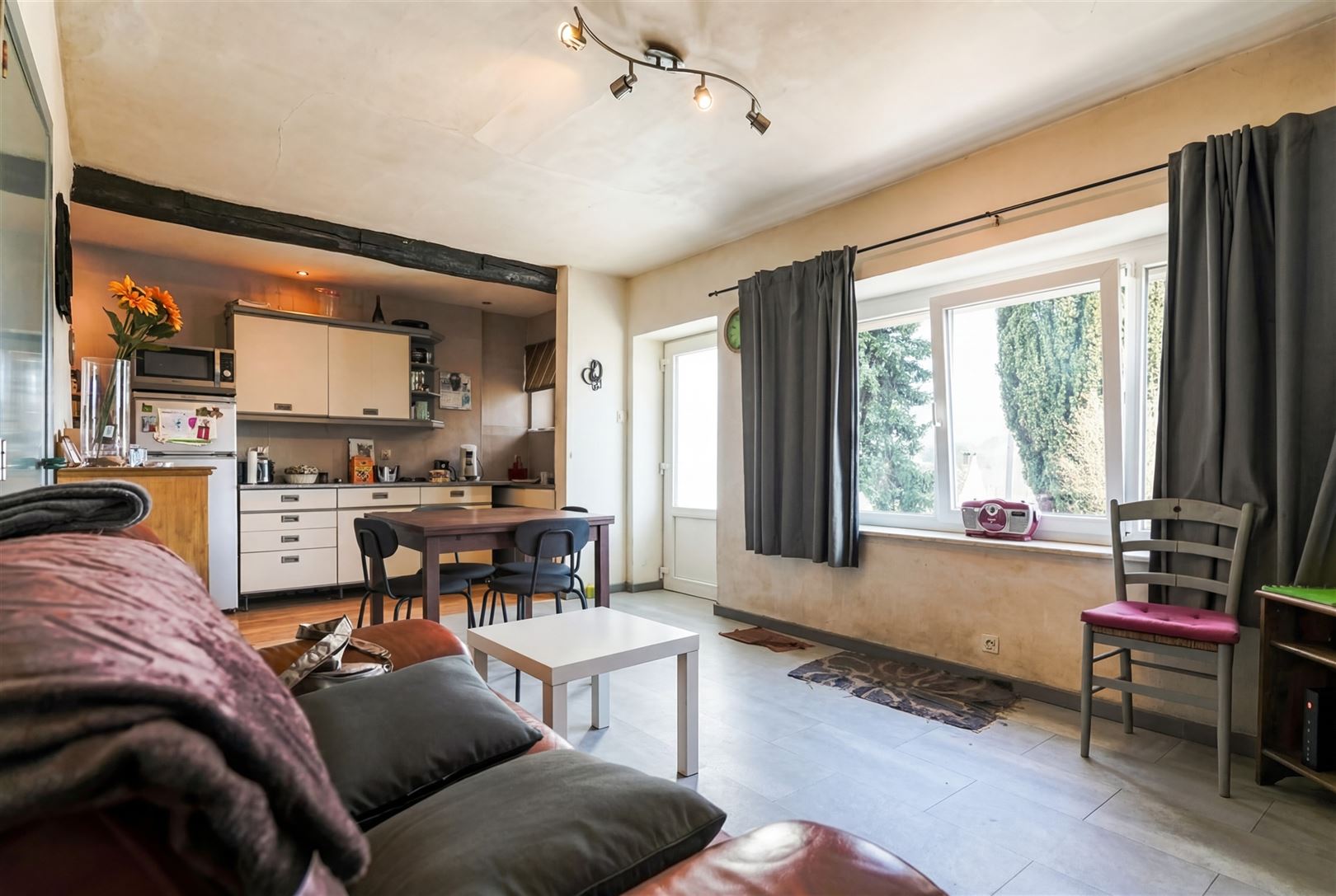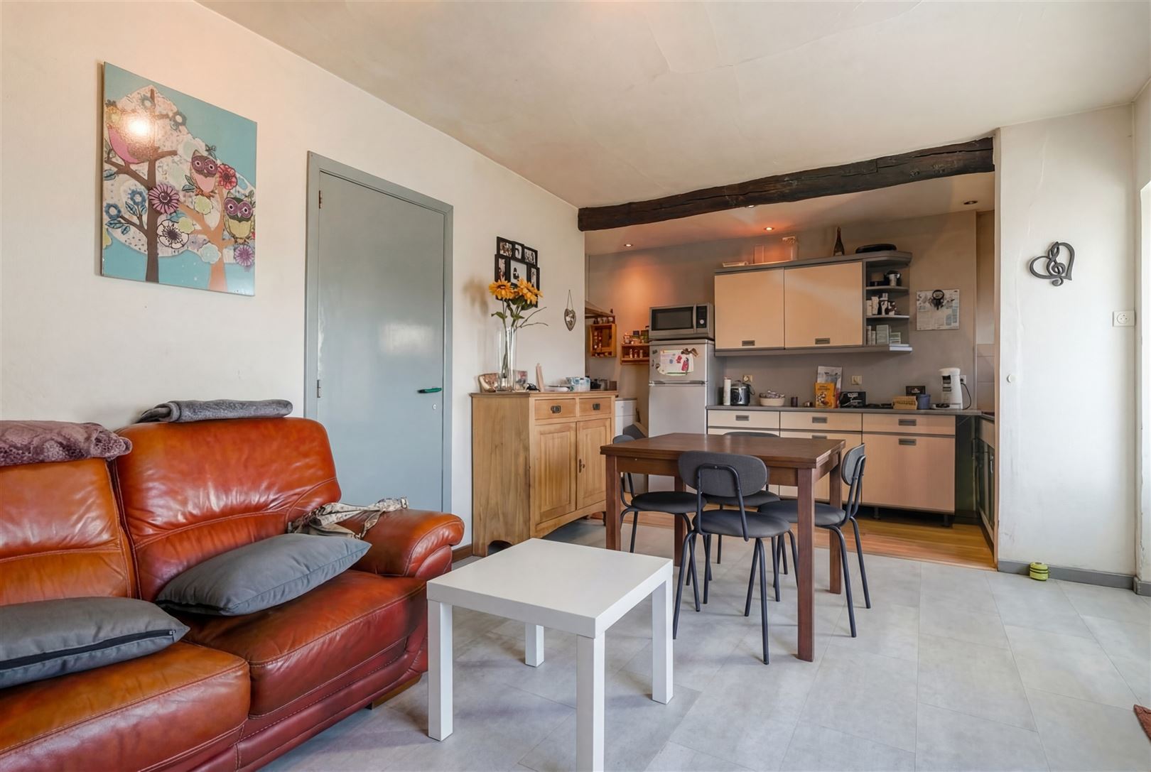 Située sur les hauteurs du charmant et paisible village d'Huccorgne, bénéficiant d'une magnifique vue, jolie petite maison avec hangar qui se compose comme suit: Au rez-de-chaussée; séjour (salon/salle à manger) ouvert sur la cuisine et grand hangar de ± 52m² au sol avec WC et mezzanine. Au 1er étage; une spacieuse chambre de 14m² et salle de douche. Ce bien bénéficie également d'une cave au sous-sol, d'une terrasse avec belle vue et d'un beau jardin. La dépendance est idéale pour une activité complémentaire, un agrandissement, voire la création d'un second logement (sous réserve des autorisations requises). Caractéristiques techniques: châssis PVC double vitrage, poêle à mazout, citerne ± 1.200L, toiture récente (2016), boiler électrique. Obligations locatives à respecter. Faire offre à partir de 129.000€ (sous réserve de l'acceptation des propriétaires). Informations données à titre indicatif et non contractuel. www.immo-bertrand.be