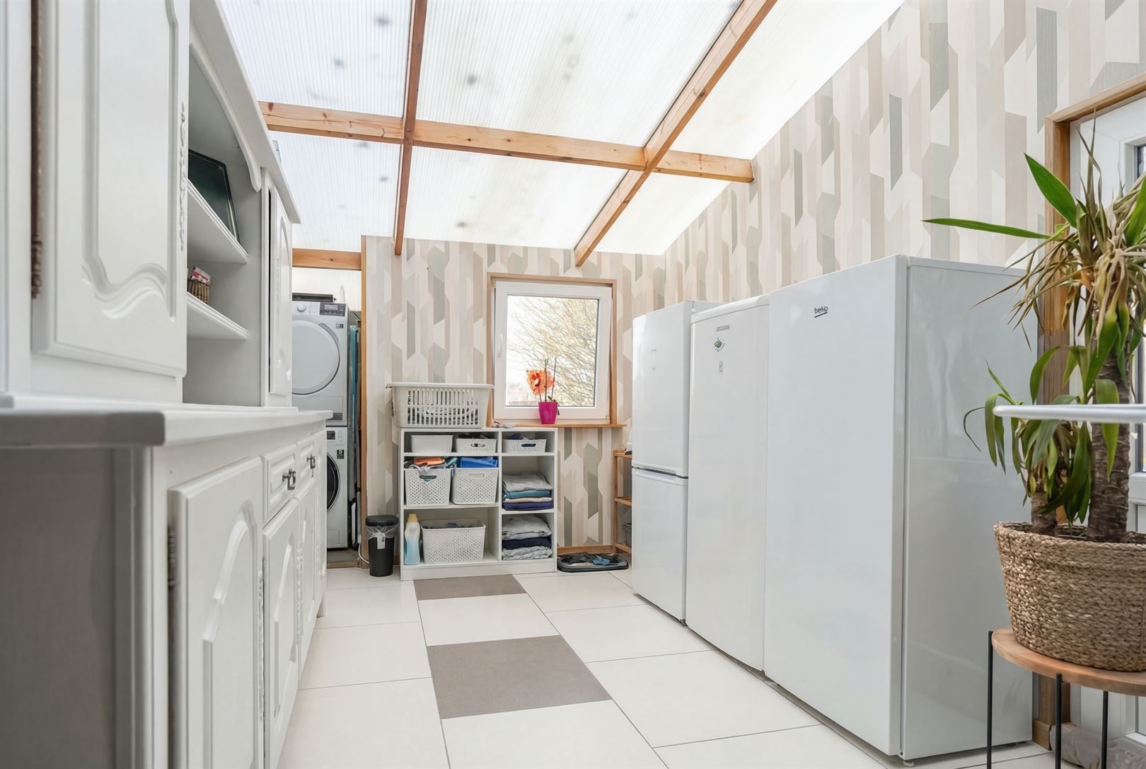 Hall d’entrée avec WC indépendant, lumineux séjour de 21 m² accompagné d'un agréable petit salon de 11 m², espace cuisine de 12 m² ainsi qu’une buanderie de 11 m².