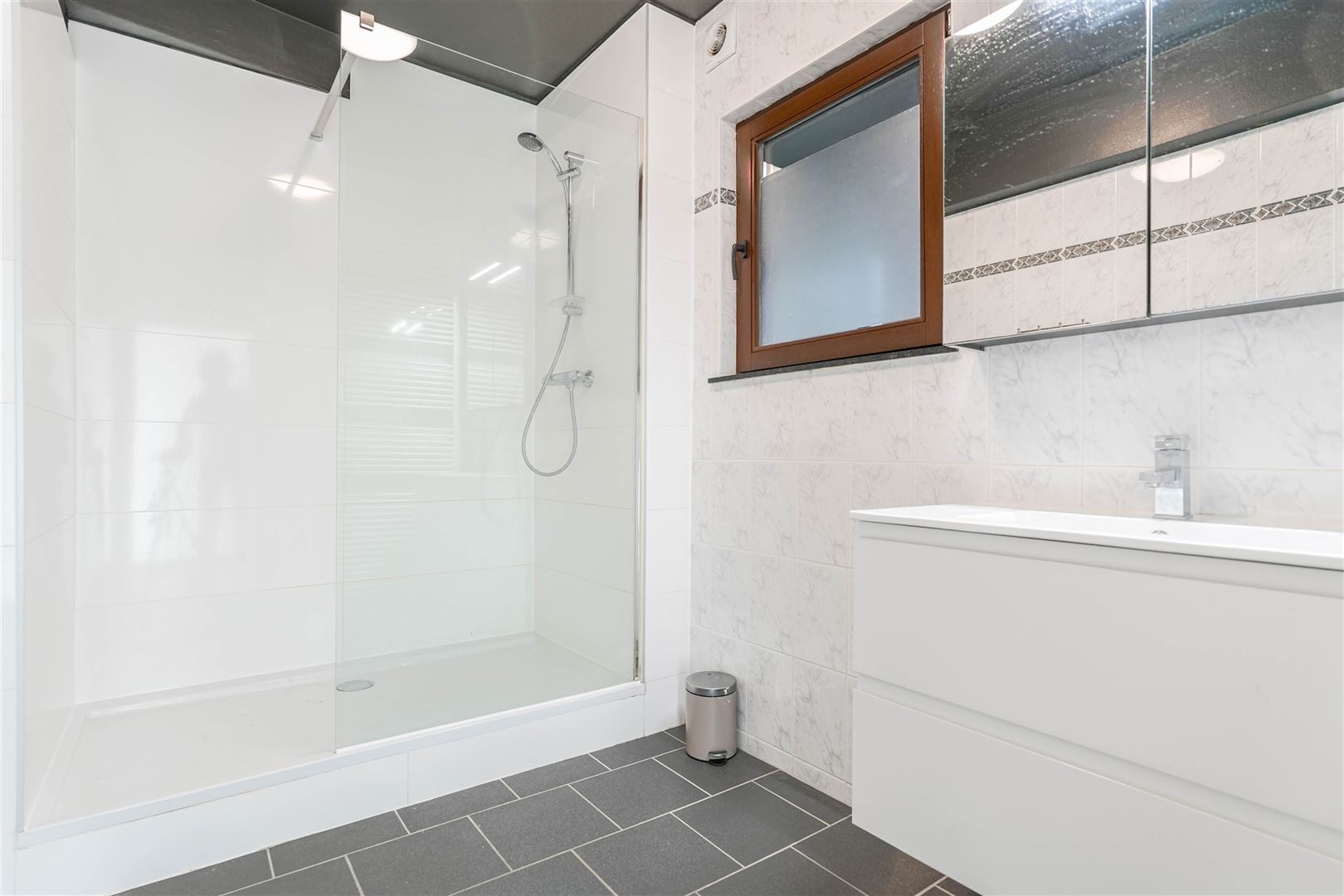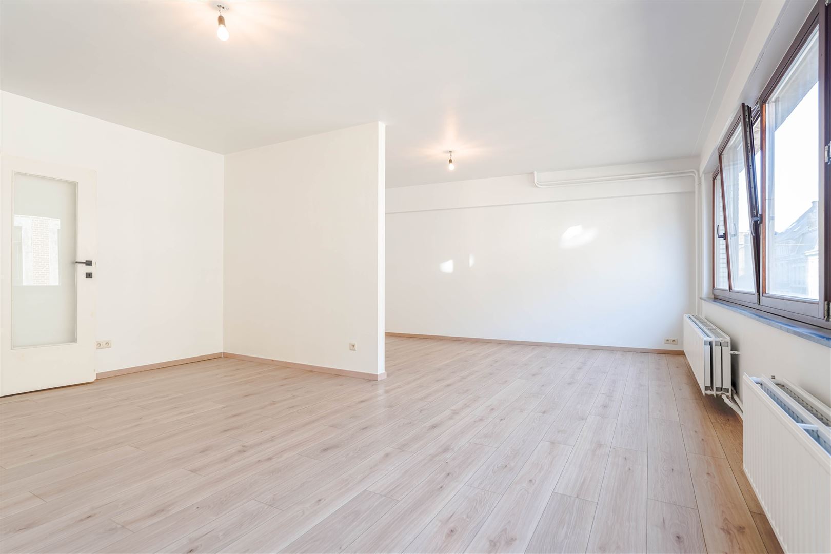 Situé en plein centre-ville, ce lumineux et grand appartement de +/- 110 m² entièrement rénové se compose comme suit :