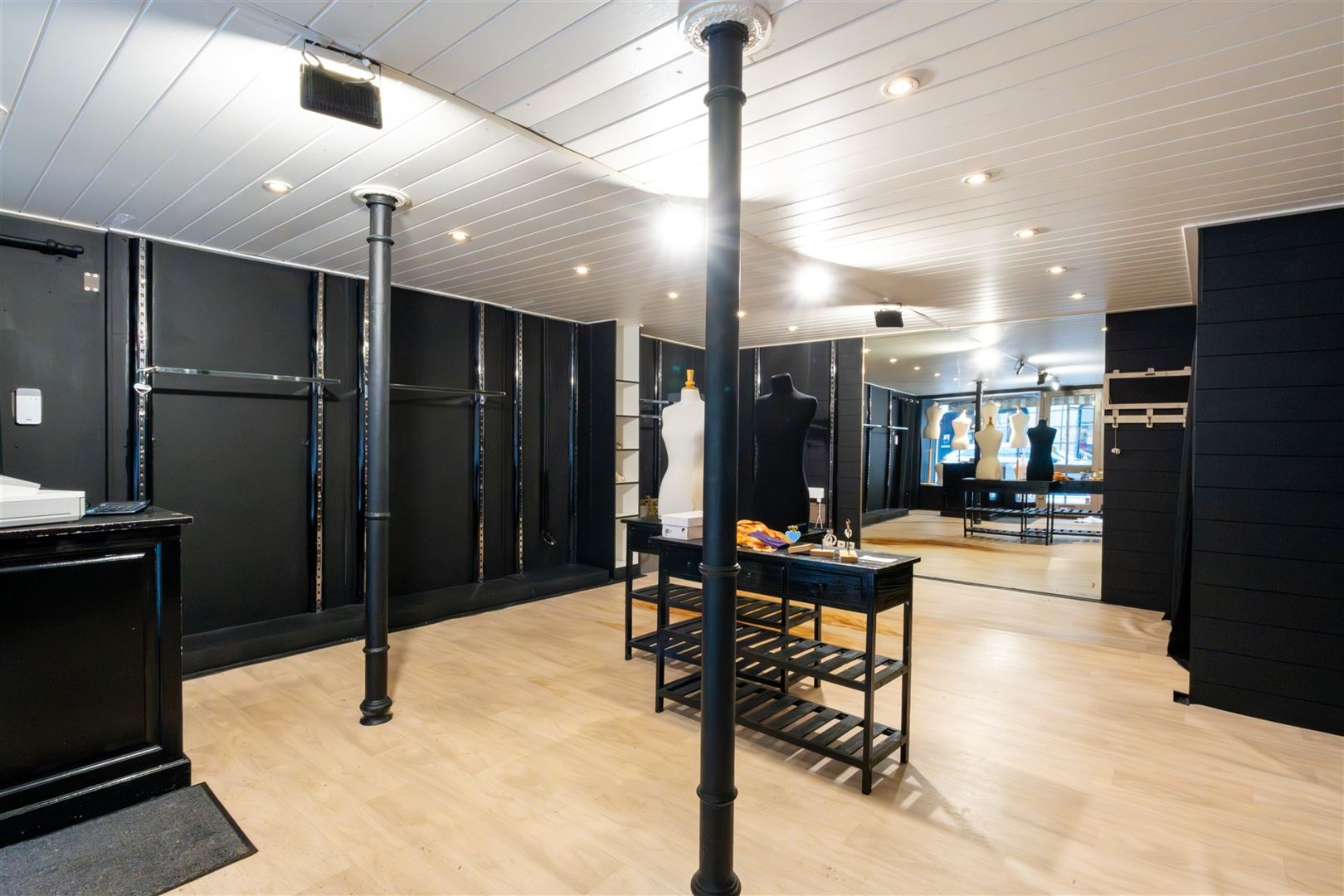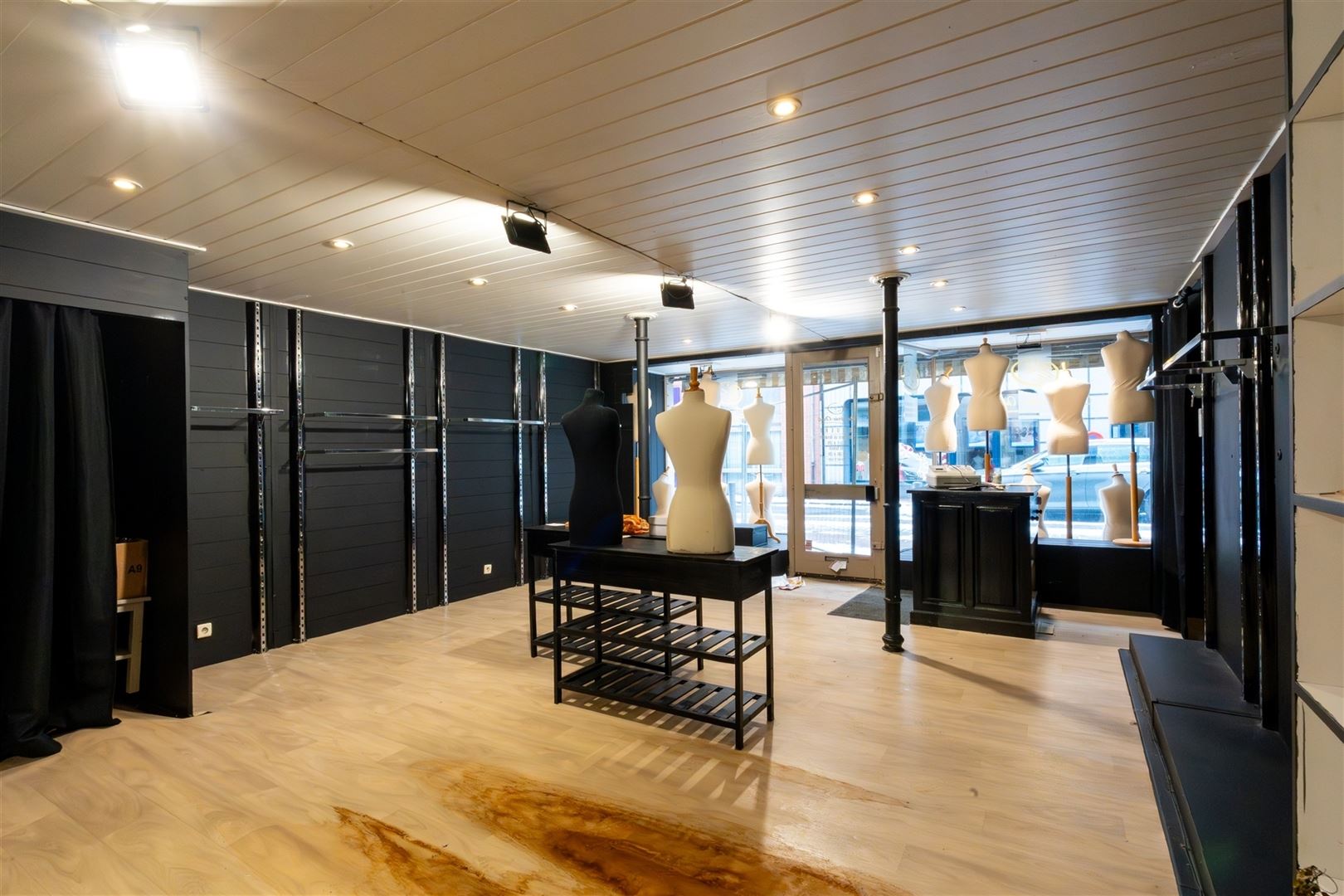 Au rez-de-chaussée : belle surface commerciale de +- 42 m² avec réserve et toilette séparée.