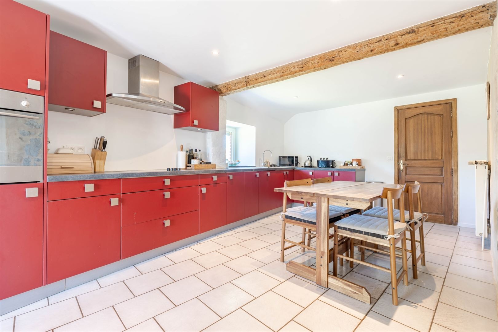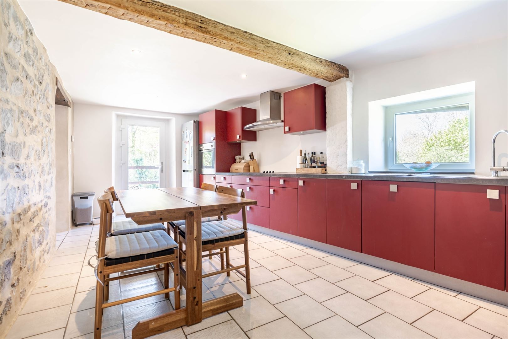 Idéalement située au calme du petit village de Xhoris, implantée sur un terrain de ± 693m², charmante maison de caractère récemment rénovée qui se compose comme suit: Au rez-de-chaussée; spacieux séjour (salon/salle à manger) de ± 30m², cuisine entièrement équipée, salle de douche et deux grands garages communiquant offrant un beau potentiel d'aménagement (chambre supplémentaire, activité complémentaire, profession libérale). Au 1er étage; palier de nuit/bureau et deux belles chambres de 11m² et 12m². Ce bien bénéficie aussi de nombreux espaces en sous-sol (rez-de-jardin) avec plusieurs caves, atelier et chaufferie, mais également d'un grenier, d'une agréable terrasse et d'un joli jardin arboré idéalement orientés SUD - SUD-OUEST. Caractéristiques techniques: chauffage central mazout (chaudière de 2025), poêle à bois, châssis PVC double vitrage (2016), bonne performance énergétique (PEB D), électricité CONFORME, toiture récente isolée, mini station d'épuration. Cette jolie bâtisse vous séduira par son côté chaleureux, ses possibilités d'aménagement et son environnement paisible. Faire offre à partir de 289.000€ (sous réserve de l'acceptation des propriétaires). Informations données à titre indicatif et non contractuel. A visiter sans tarder. www.immo-bertrand.be