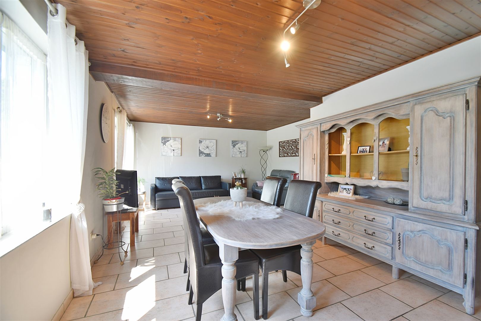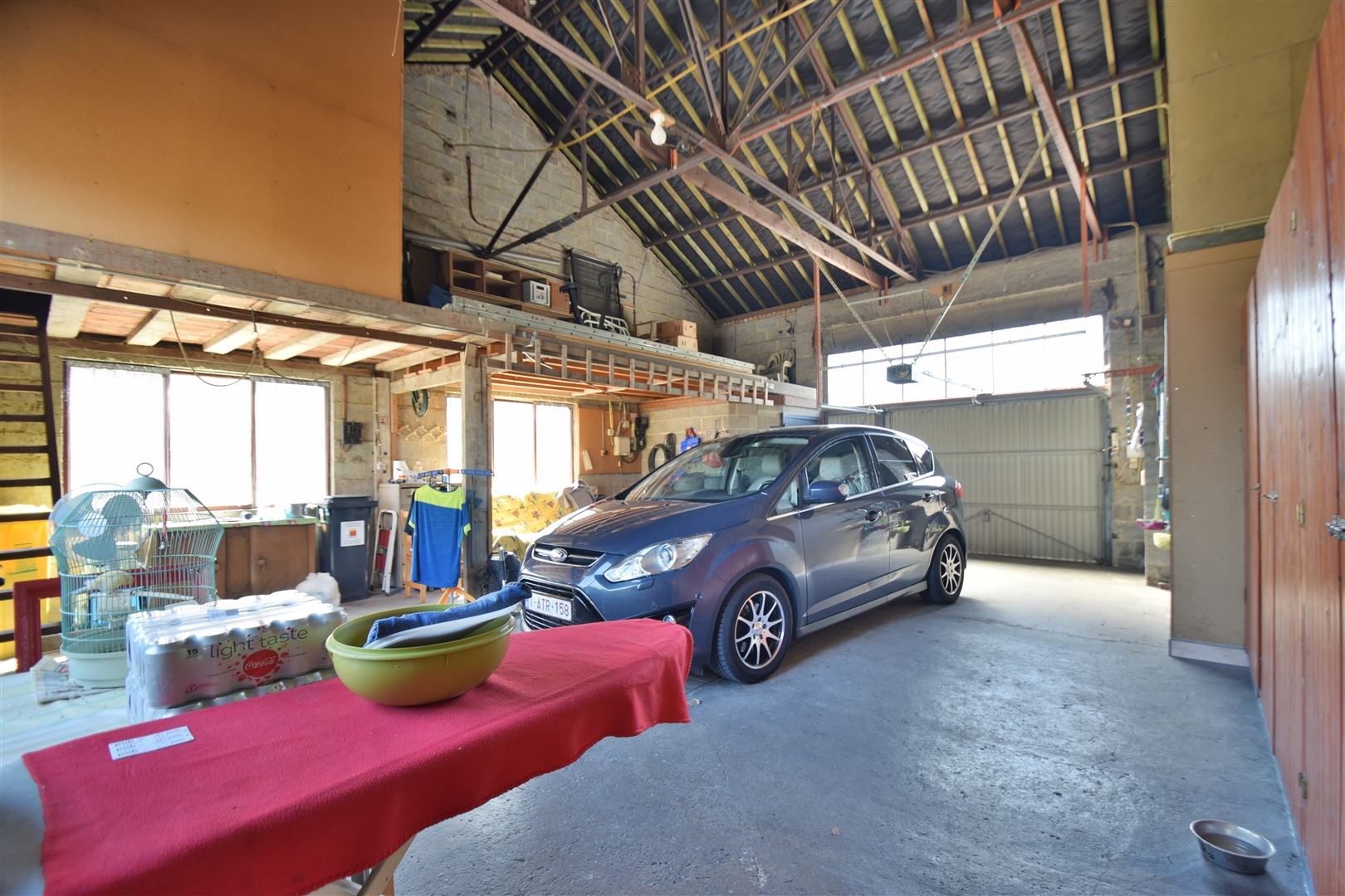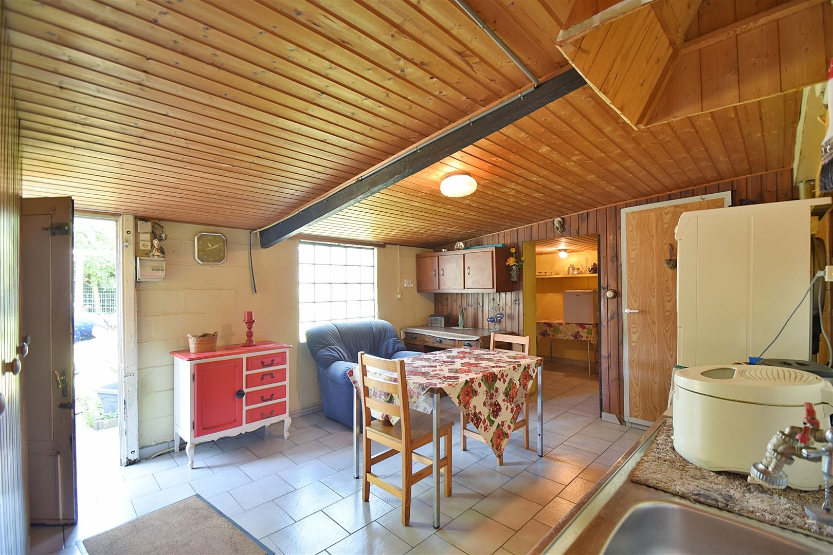 Rez-de-chaussée : Hall d'entrée, séjour ouvert sur la salle à manger, cuisine avec petit salon, salle de douche, espace buanderie/rangement et spacieux garage de +/- 80 m² pouvant accueillir une profession libérale ou activité professionnelle. Elle comprend également une terrasse, un jardin et un abri de jardin.